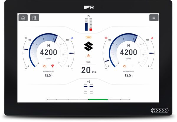 Deze gegevens worden volledig geïntegreerd in een native Raymarine Suzuki-applicatie, die beschikbaar is op alle Axiom-displays met LightHouse 4.10 of hoger. De app bevat een uitgebreide datapagina en een motorinstrumentendisplay, waarbij alle Suzuki-waarschuwingen en meldingen direct worden weergegeven – voor maximale betrouwbaarheid en veiligheid op het water.